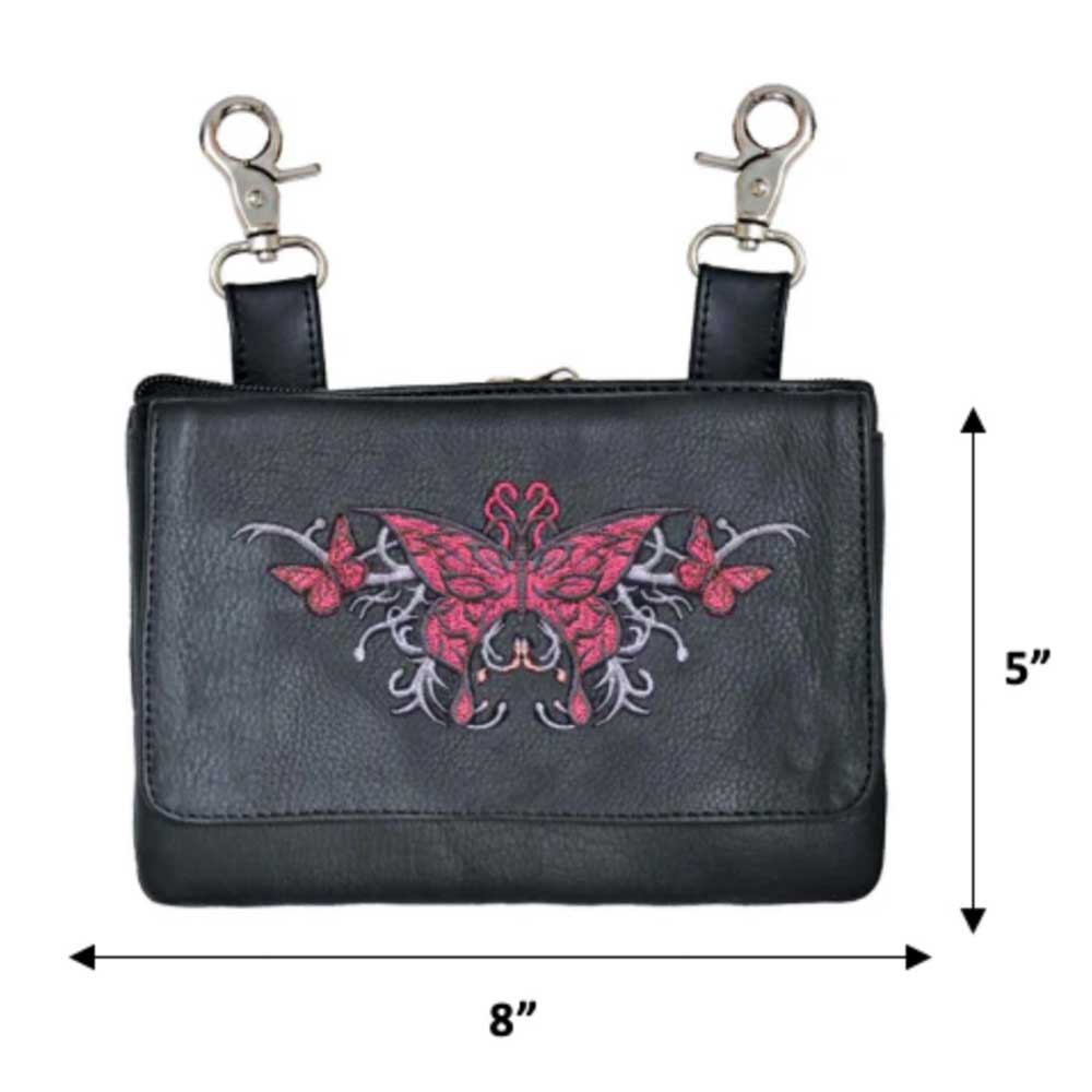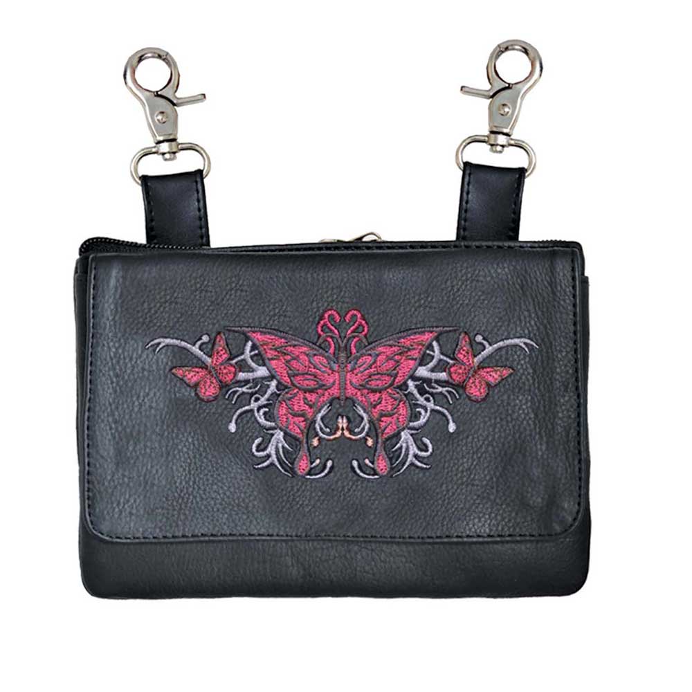 Elevate your riding gear with the Ladies Leather Clip-On Bag from Unik, meticulously crafted from luxurious cowhide leather. Designed for both functionality and style, this bag features silver hardware accents, two hook and loop clips for secure attachment, and a versatile 54" shoulder strap. Whether used on or off the bike, it offers convenient storage and a touch of elegance to your ensemble.