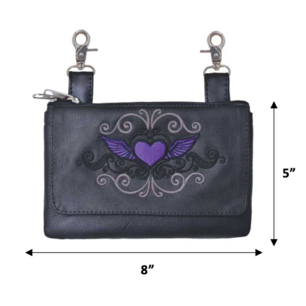Elevate your riding gear with the Ladies Leather Clip-On Bag from Unik, meticulously crafted from luxurious cowhide leather. Designed for both functionality and style, this bag features silver hardware accents, two hook and loop clips for secure attachment, and a versatile 54" shoulder strap. Whether used on or off the bike, it offers convenient storage and a touch of elegance to your ensemble.