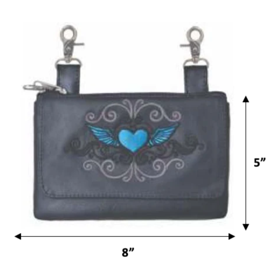Elevate your riding gear with the Ladies Leather Clip-On Bag from Unik, meticulously crafted from luxurious cowhide leather. Designed for both functionality and style, this bag features silver hardware accents, two hook and loop clips for secure attachment, and a versatile 54" shoulder strap. Whether used on or off the bike, it offers convenient storage and a touch of elegance to your ensemble.