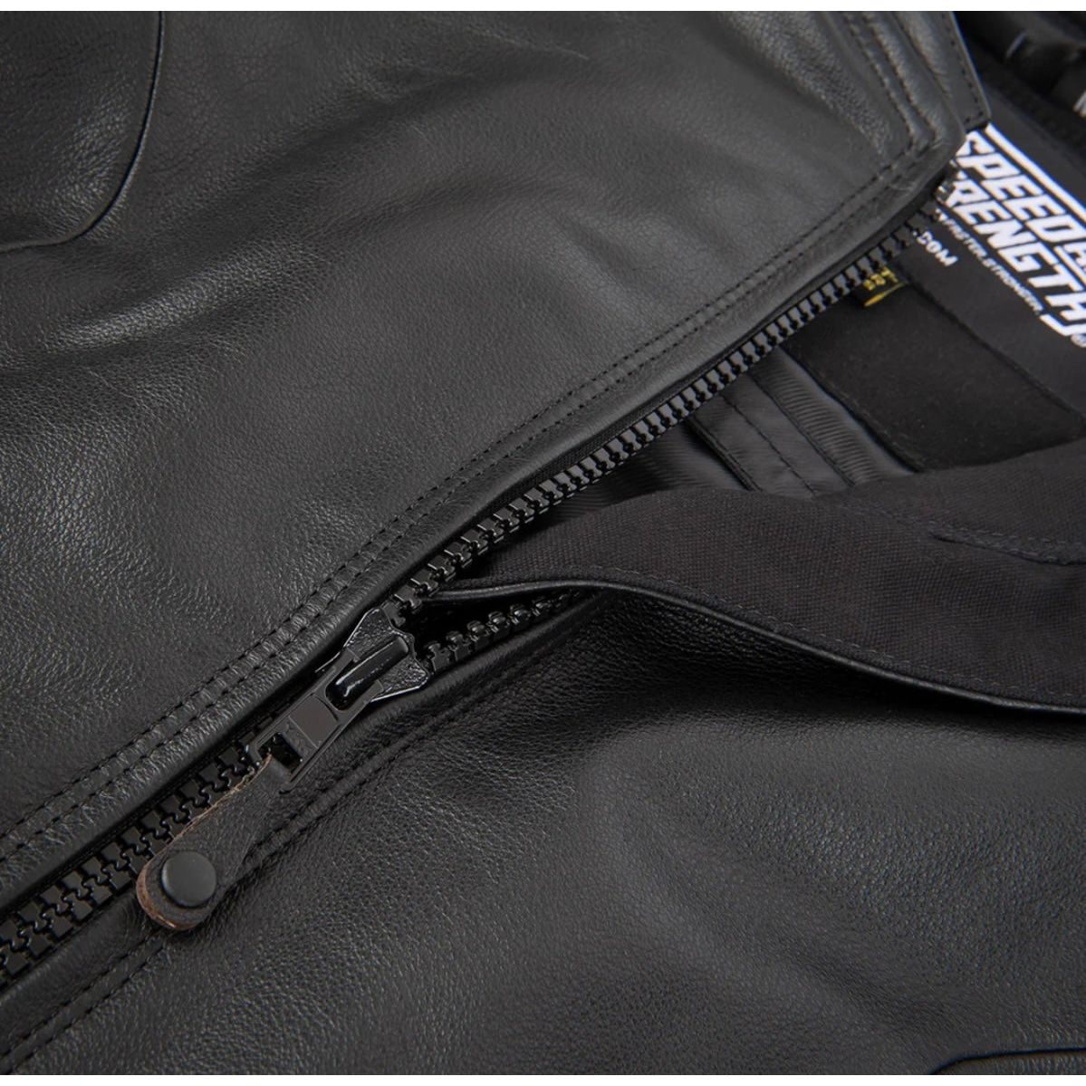 The Speed and Strength® THROTTLE BODY™ jacket has a classic leather styling with modernized details and fit. It has a relaxed, comfortable fit in the shoulders and chest, with a flattering cut down to the hips. Shoulder expansion gussets allow for more range of motion across the shoulders and bust. The addition of lockdown™ waist adjusters help to create a more versatile fit and to boost the protection we've upgraded to the new Vault™ Chain-Link C.E. Level 2 armor in the shoulders and elbows as well as a Vault™ C.E. spine pad. As a bonus, we included our Armed Response™ Concealed Carry pocket.