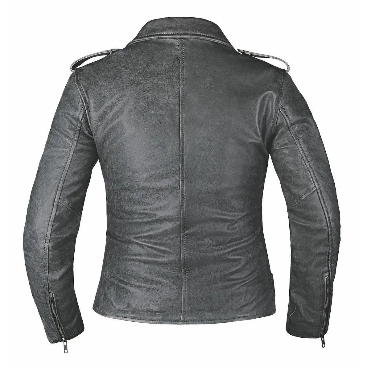 Embrace classic motorcycle jacket style with the Tina Leather Jacket by Derringer Leather. Crafted from luxurious lambskin leather in timeless gray, this jacket combines traditional design elements with practical features, making it a versatile addition to your wardrobe. Step into timeless elegance and practicality designed to enhance your wardrobe with its classic motorcycle jacket design and luxurious leather construction suitable for various occasions.